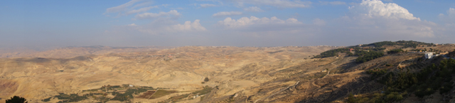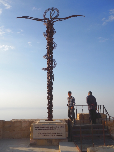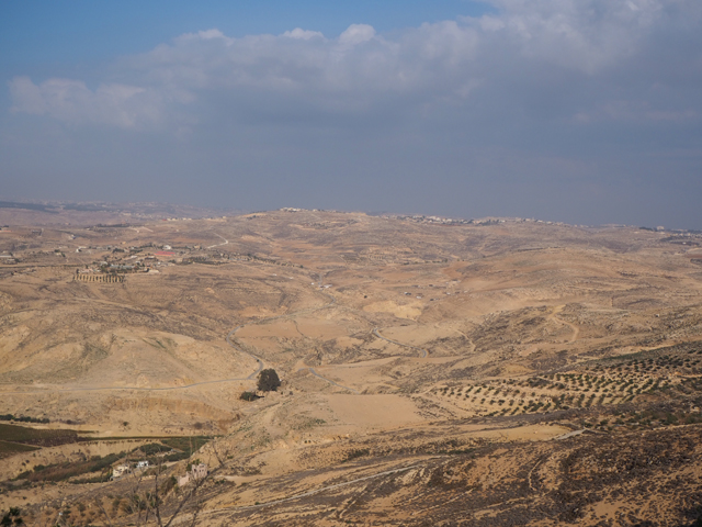 不知是否時代風情使然,舊約裡的神相當情緒化,施罰也狠,違抗他、不信他便大肆奪命,就算只是意外觸犯規條,同樣得死。新約裡相對心慈,讓耶穌代行後,就是些自然奇蹟、醫病復生威能,即便哪方的行為再離譜,好像也沒什麼奪命之舉,是最後看不過去,才藉羅馬之手使「耶路薩冷」覆滅。所以摩西若換個時代,會否便有不同命運呢?我在狂想中看著窗外岩砂荒茫,車也在此時駛上了「尼波山」(Mount Nebo),聖經裡摩西的止步之地。