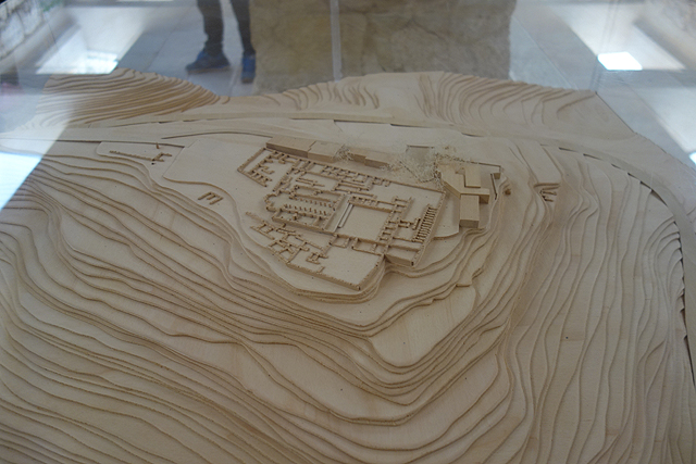 附近另有間簡報館,擺列了「尼波山」區域找到的陶製瓶罐,某些仍存著拜占庭時期的彩繪,在一些殘柱與小幅馬賽克作品間,也有教堂兩個時期的佈局俯視,掛於牆的殘片被置回原位,得以相互比對。小模型則顯示了全盛時期外觀,諸多屋房於山頭簇擁,宛如當年民眾對摩西的帶領企盼。