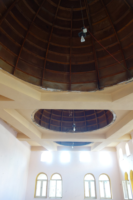 離開旅館,外頭由東襲入「蛇道」,劃穿「佩特拉」的這條乾谷,據說是由「摩西之泉」肇始,而信徒們也真找到一個點,堅貞信仰,讓每個來此的觀光客都順道過去見識。它的地點相當便捷,就在大馬路邊,有著難以歸類的外觀,因為不屬新約故事,合理沒有教堂罩覆,跟看過的猶太人建築也沒相似處,廊柱佈局不甚傳統,成列拱窗上是三個不同大小的蛋形拱頂,總覺得是近代混融了多種概念後的個性作品。