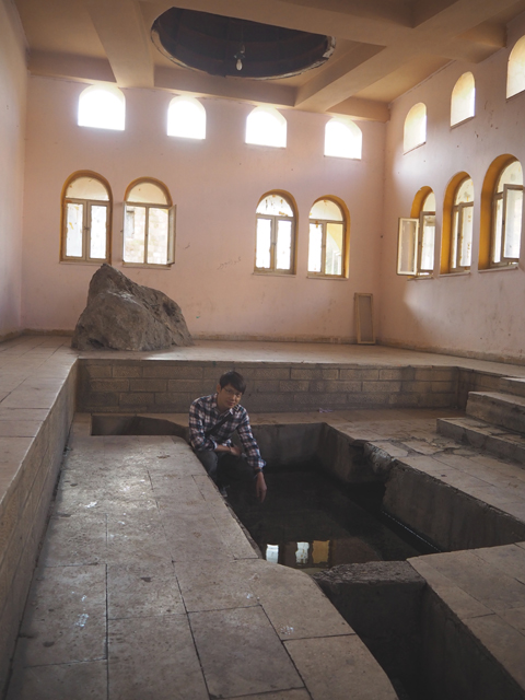走了進去,裏頭比外觀還要素淨,像是贊助經費在屋子砌完便已用盡,應該多放個捐獻箱,再添張說明板把來由寫得繪聲繪影。在故事裡,摩西帶著跟隨他的百姓出埃及、過紅海,往北尋找應許之地,怎料走了四十年沿途卻盡是荒茫,很令人喪志。幸好在多數群眾已口渴不支時,摩西得了神諭以杖擊石,奇蹟使其生流,才讓旅程得以繼續。很顯然,情節所述的就是廳角那塊粗糙大石了,仔細一看,中間還真有裂縫,只是類似的裂岩「佩特拉」到處都是,最初是哪一位,又是用何樣的證據說服他人呢?無從知曉的我,僅能跟著大夥走近一旁特意砌出的方池,碰碰或許真有神奇力量的泉水,以很觀光客的姿勢拍照留念。