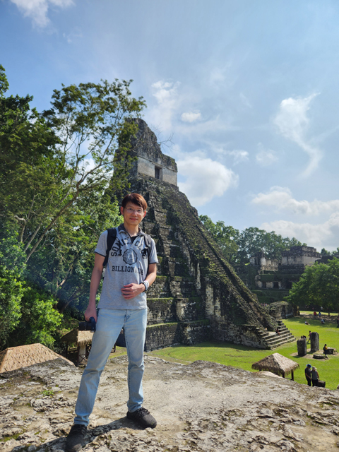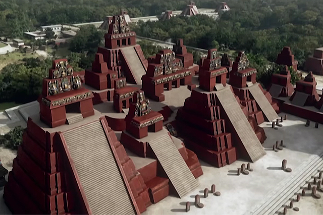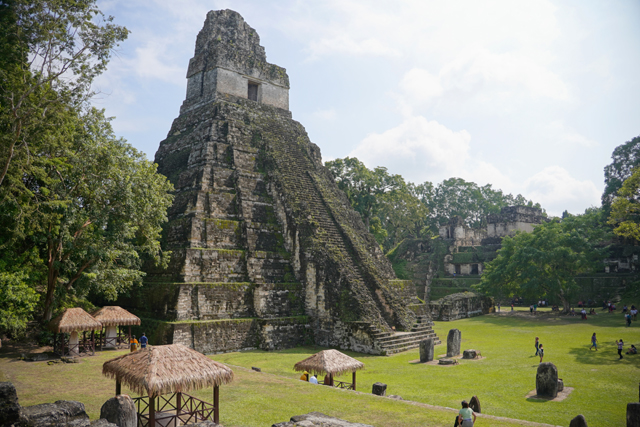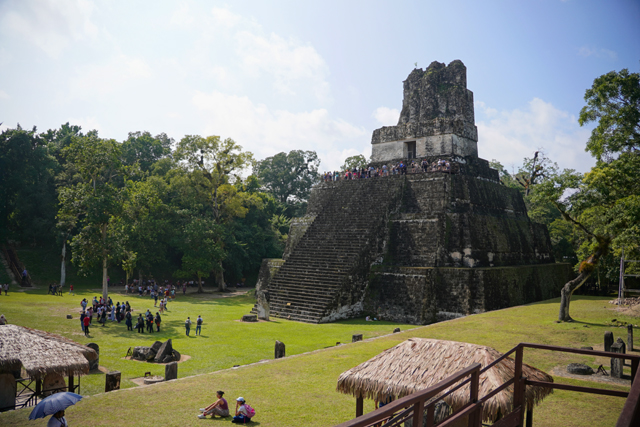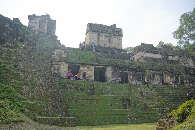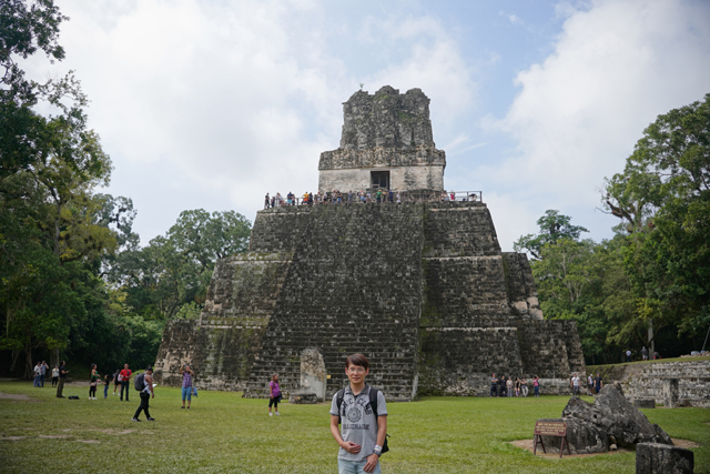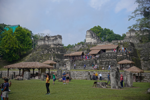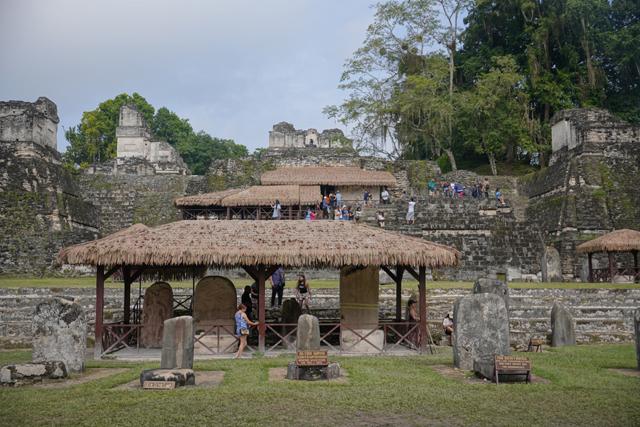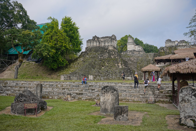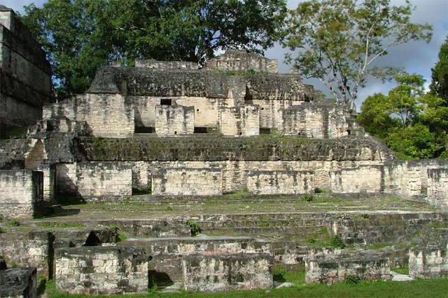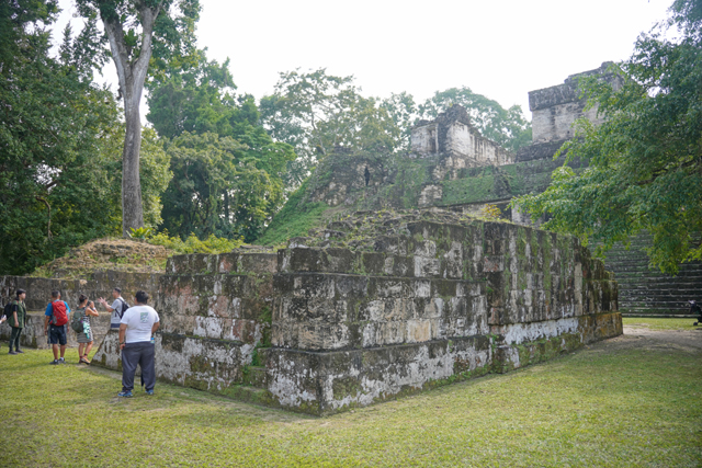 所以只能在慨歎中聽講古了,這座「Temple 1」也被稱作「美洲豹神廟」,因為若進了殿,會發現頂頭門楣嵌著木質雕板,刻了坐在美洲豹王座的男子。而這第二十六代王「Jasaw Chan Kʼawiil」可是領導「提卡爾」再興的厲害人物。會說再興,是因為當年另有位於「卡拉穆」(Calakmul)的「蛇王朝」與其相抗,它或分化或結盟,與周邊城邦形成包圍網。在其推波助瀾下,「卡拉科爾」(Caracol)於六世紀先出了手,把那時的「雙鳥王」(Wak Chan Kʼawiil)殺了。七世紀時,「提卡爾」以近親扶植的「多斯皮拉斯」(Dos Pilas)也被策反。由後者王室接管的「納蘭霍」(Naranjo),亦於知名「六天空女王」的主持下趁機補刀。自「大美洲豹爪」起始的盛世,就這樣落入超過百年的衰頹。