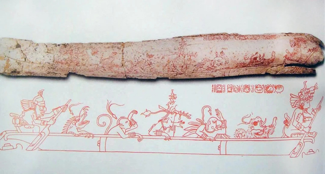 但當「Jasaw Chan Kʼawiil」即位後卻有了戲劇化轉折,一場大戰不僅擊敗了「卡拉穆」,還擄回它的王「火之爪」。似乎名諱所指的「清除天空」真給了神力,一掃長年陰霾,帶來耀朗晴空。如此的功績,很合理有眼前這樣的高塔來彰顯,殿裡的門楣除了用文字紀錄,王頭頂還有被高高舉起,代表神靈加持的美洲豹雕物,並以裝束、儀典日期,連結三百年前帶入新王室血脈的「貓頭鷹心臟擊碎者」。墓室也埋設於塔底,經考古人員挖掘,找到了華麗首飾、三十七塊刻有精微文字神祇的骨頭。
