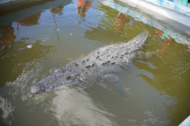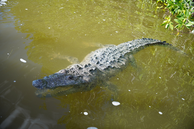 用相機拍下圖板留底,結果接續收集到的竟是鱷魚,且都挺癡傻,嘴巴開開不動,聽到水瓢敲水聲就被騙來,被三艘船包圍了也無感,呆呆給人拍照。我看大家也滿放心的,都不怕牠突然生氣躍起來咬?話說回來,遇到鱷魚其實很正常,畢竟這裡會被取名為「Río Lagartos」,就是船員被數量眾多的牠們嚇到啊。