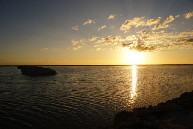 不免要去尋找被列為主打的紅鶴,怕打擾到牠們,當進入活動區便得降速靜靜開去,在遠處望。先遇到的兩隻像冷戰中的夫妻,離遠遠各自低頭覓食。另一組的感情就相對好,偶爾會走近聊幾句,幾將靠碰的彎彎長頸搭配橘紅羽色,很博人好感。這時我那望遠焦段不足的鏡頭就顯得悲劇,後製裁切後只能得到勉強輪廓,捕捉不到細節。