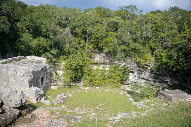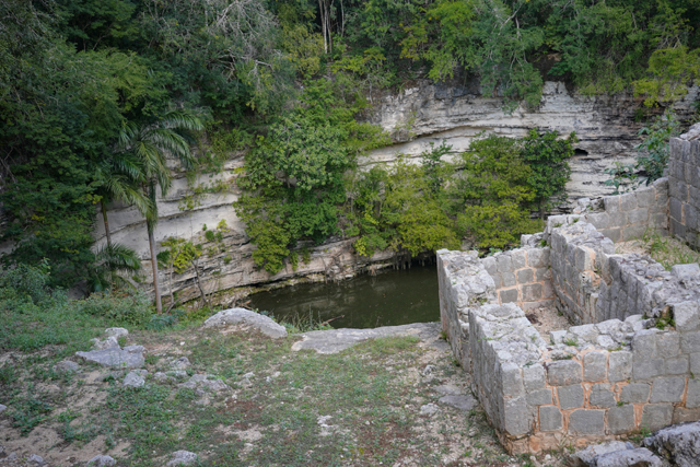 這樣的地方本該是珍貴的水資源,但看來早轉為宗教性質,南緣的殘跡是門口朝西的祭殿,還附加了蒸氣室,用來淨化祭司或將被獻祭的人。從撈上的遺骨分析,過半居然是小孩。望著灰白穴壁、攀生林樹朝旁側走,幾道石板由井緣前探,很令我懷疑是祭壇的附屬,曾有無數人或被逼迫或被曉以大義,在泣怨中往下跳。思及此,便覺那深幽的水色更混濁了些,到了夜晚會窸窸窣窣,浮升出虛影。