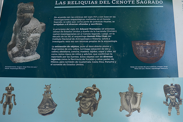 歷史雖殘忍血腥,卻也因同時扔了不少祭物下去,令考古學家得以追跡過往,出土的數量已多達數千,當中玉器是最大宗,也包攬了織品、陶器、金石貝類,五花八門。它們很多都不是此地物產,看板所示的人偶有的逗趣有的詭譎,風格的歧異意指不少來自遙遠地域,顯見這兒在當年的知名度。