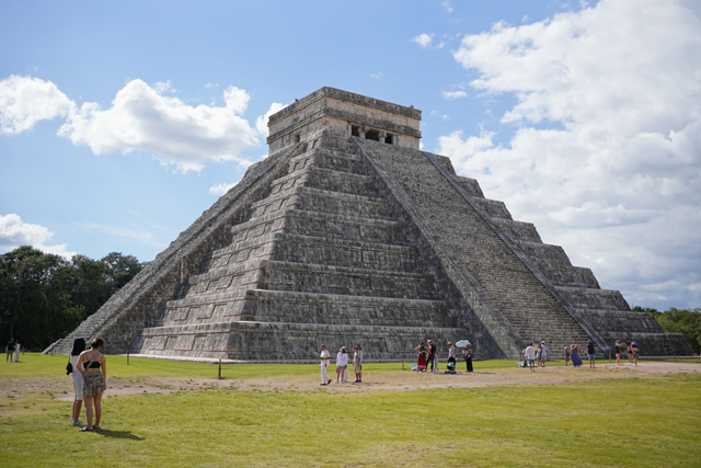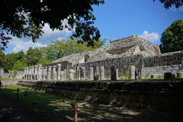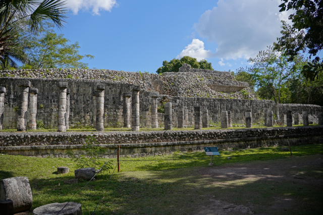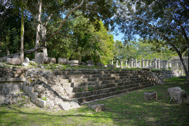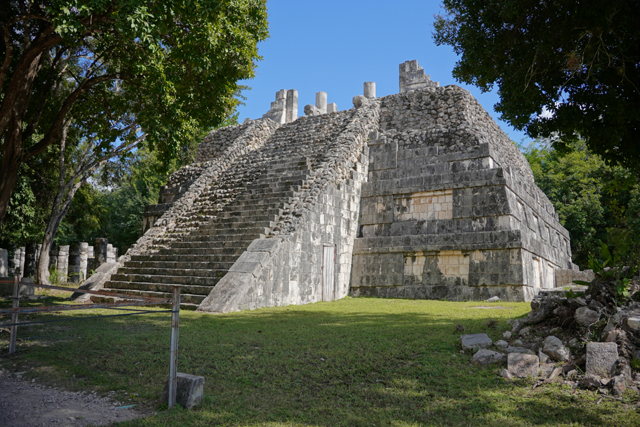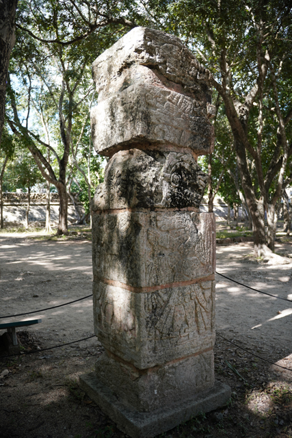 怔望著這以列柱烘托的形姿,我疊合上常被相提並論的「圖拉金字塔」。它位處墨西哥中部的「托爾特克」都城,除了以戰士柱為陣,還將更立體的運至台頂,一尊一尊地蔚為奇觀。也是因為這樣,「奇琴依查」與它的關聯不言而喻。視線略移,左側尚有尺度略小的「桌神廟」(Temple of Tables)。這奇特的稱呼緣於頂上的祭桌,且據說是用造型逗趣的小人撐抬。但無法上去的我只能胡亂想像,然後跟著大隊往他處走。
