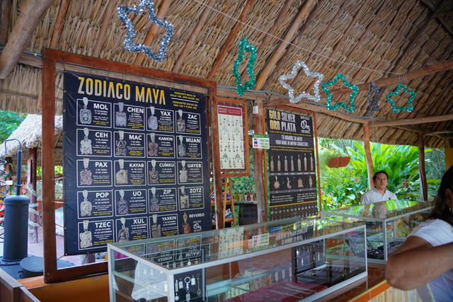 這飯店顯然有跟「Ik Kil Cenote」配套,在櫃台便能先別上代表已付費的手環,距離也不遠,花一小段車程就看到後者叢林度假風的外門面。經過草簷妝點的紀念品店、咖啡廳,環圍群樹標誌了「Cenote」所在,一如其名,它也是被大幅溶蝕然後表層崩塌的地下水穴,我沒找到「Ik Kil」的字義,只知早年這邊的馬雅人認為它是「雨神恰克」的居處,在此進行膜拜與獻祭。