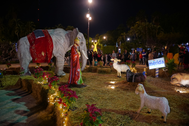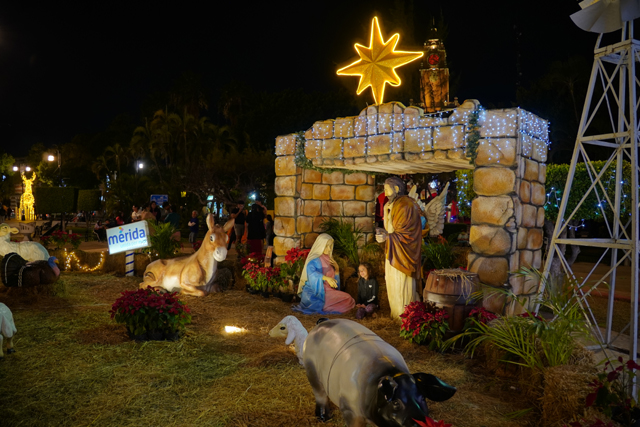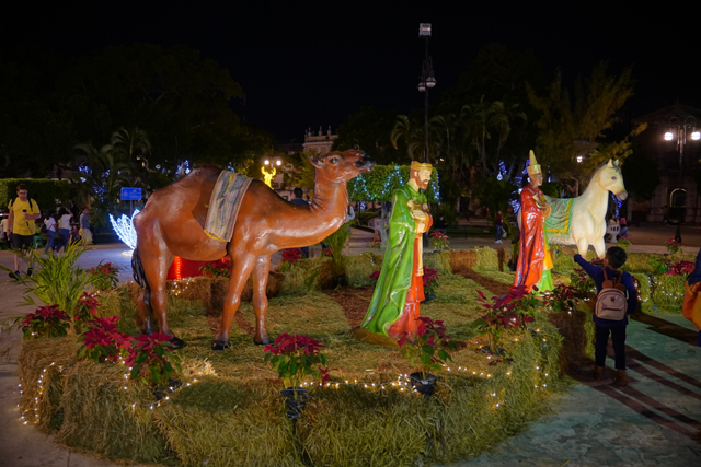 如此繞過一遭後,大夥慢慢往回走。因著聖誕將屆,廣場添入不少氣氛造景,麋鹿、聖誕樹以燈點爍閃,比座堂內規模更大的馬槽降生及三賢者來朝,也招著遊客居民亂入合影。胡亂穿進某施工中的商場拱頂甬道,一名駕著紙飛機的飛行員娃娃模樣逗趣,不知是為了什麼先行進來卡位。相對甬道的冷清,紀念墨西哥英雄「伊達爾哥」的公園卻攤販雲集,熱鬧程度能與中央廣場相競。