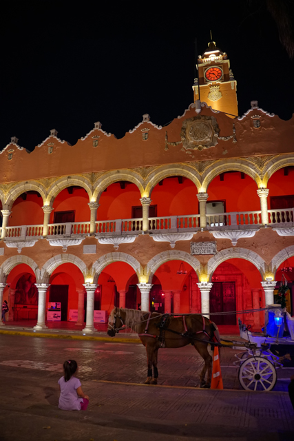 遠離歐陸的「梅里達」想當然不可能那樣闊氣,但由圖片看,外觀也相當出眾。像本是前州長居所的「Canton Palace」,壁面就以諸多楣拱、飾柱、窗台彰顯繁複切鑿。內裡則藉「人類學博物館」的馬雅展物加添蘊含。不遠尚有像雙胞兄弟的「Cámara Houses」,外觀雖僅綴了簡紋框邊,於頂欄添放成列瓶飾,屋內據說豪奢,在成為博物館前,招待過不少王公貴族。可惜我們只在「梅里達」待一晚啊,腳程能及的僅鬧區廣場。