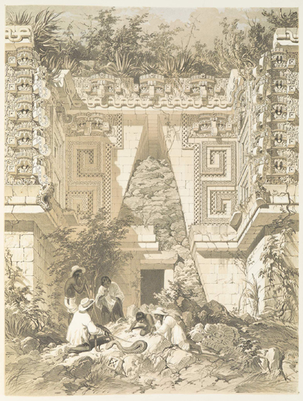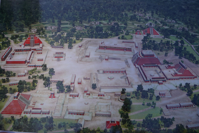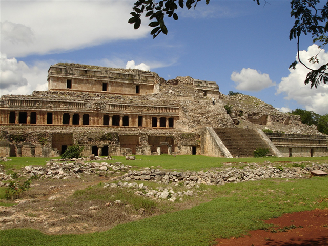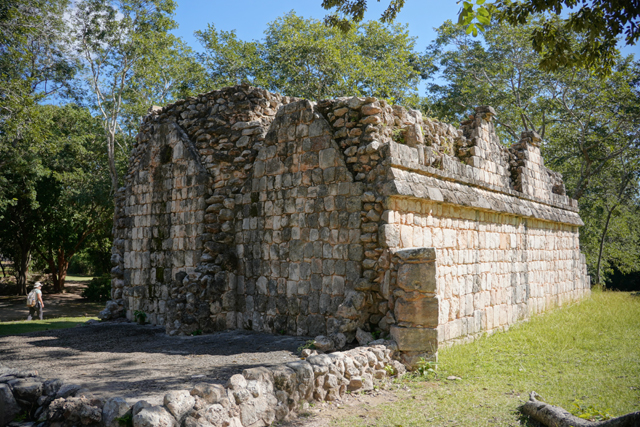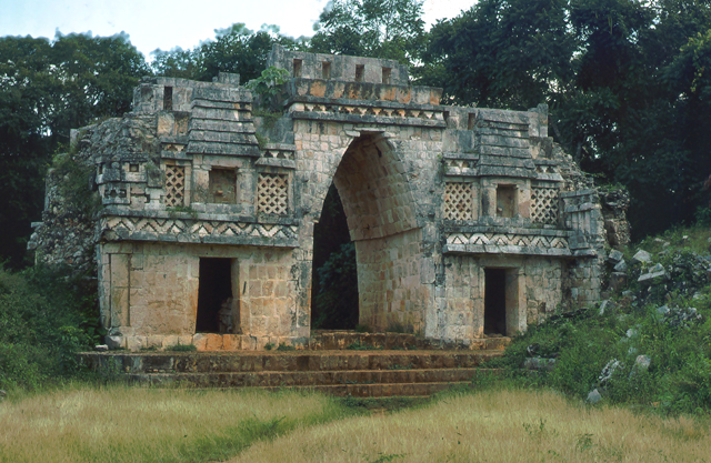 「Labna」則藉一棟門樓知名,中央的「馬雅拱」被切塑成雅致弧線,其餘雕琢也用心。內牆略簡,呈V字串連的方渦,對外的配襯了左右小屋,飾帶與邊角面具使其更顯絢麗。可惜這些特色建築都只能在網路神遊啊。