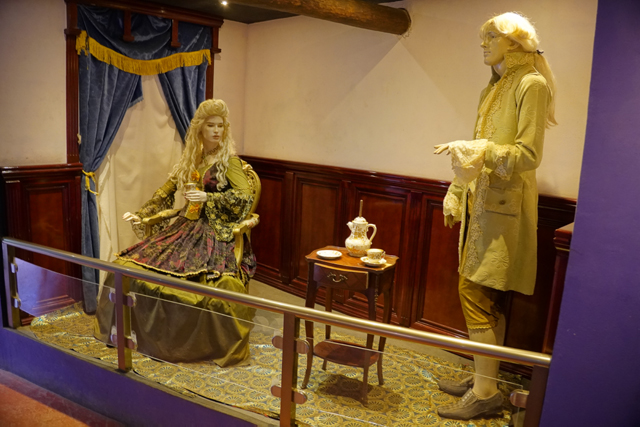 喝過後走往下一間,它講的是殖民時期連西班牙人也風靡,展櫃陳列了西洋瓷壺瓷杯,釉彩或金炫或斑斕。還作出佈景,能見華服夫人在管家服侍下,悠哉啜飲。