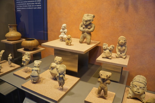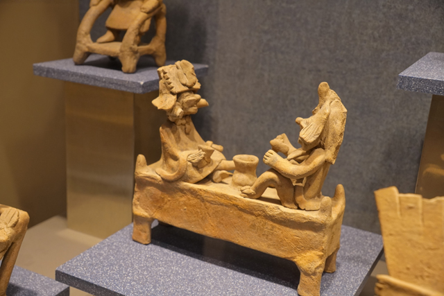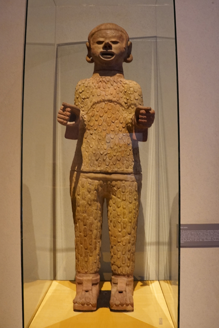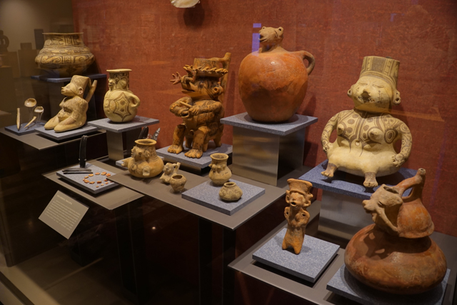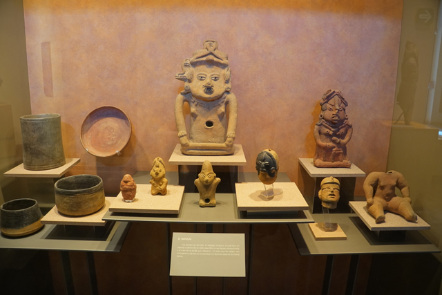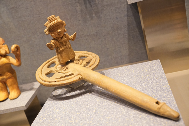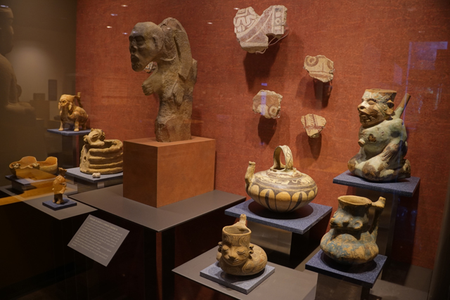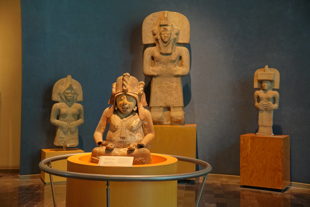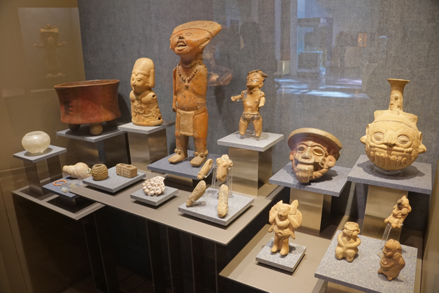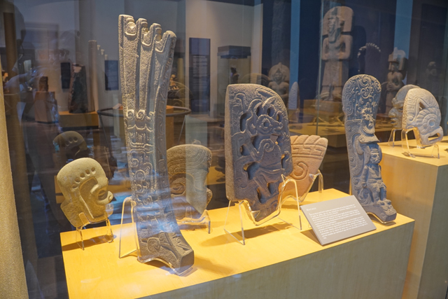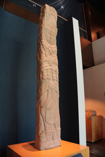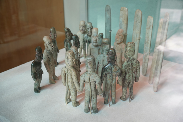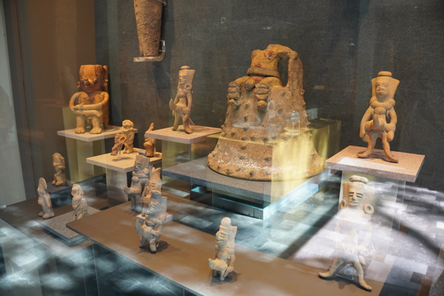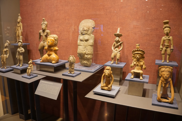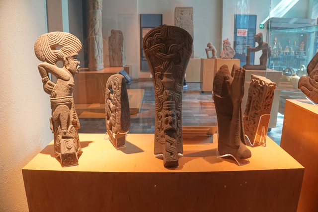 往旁逛,同區的立碑相當高,依附的風神也因此顯得纖弱,彷彿將隨風騰升飄盪。與其遙望的是根頂部膨大的石柱,主題也藉此轉入「瓦斯特克」的陽具崇拜,他們祭司在儀式時會一手扶著巨大的尖錐假陽具,一如稍早於阿茲特克區所見。而在這邊展櫃的是諸多小人偶,若仔細看,某些腿間尖翹,某些挖出孔洞,該不會是用來接合把玩的?
