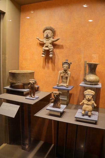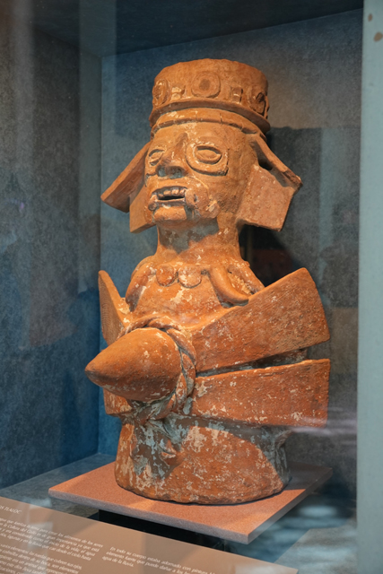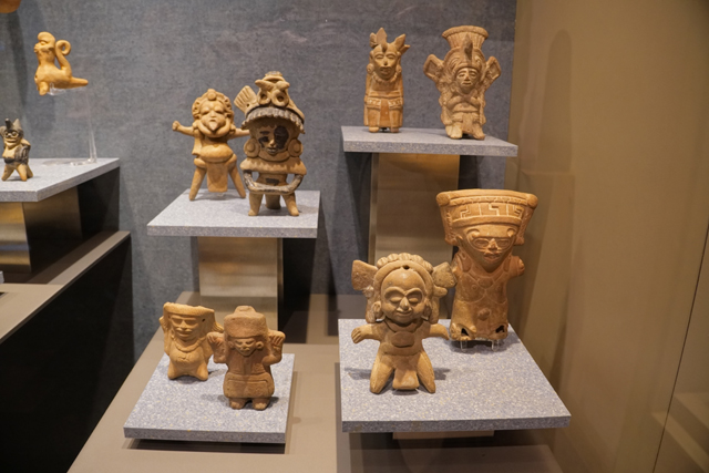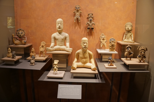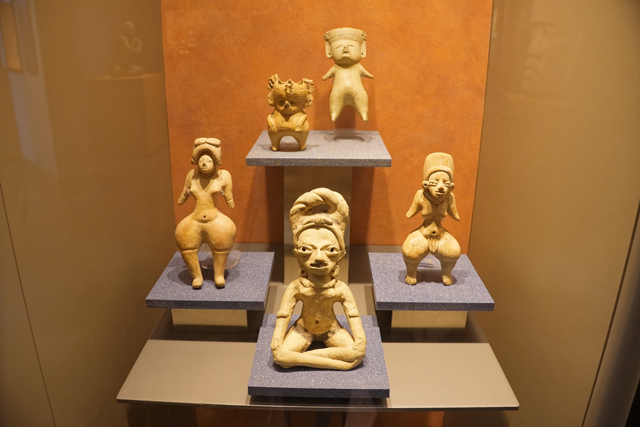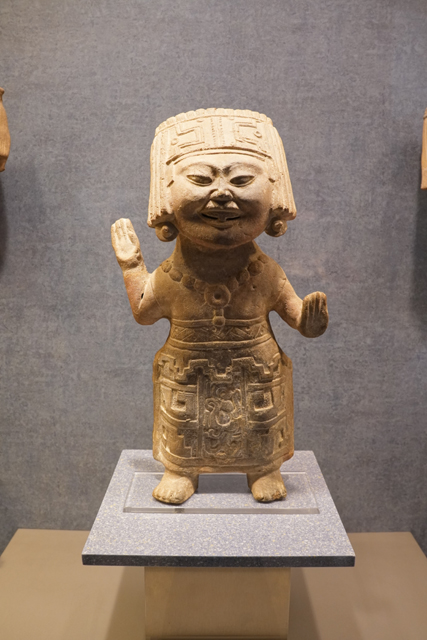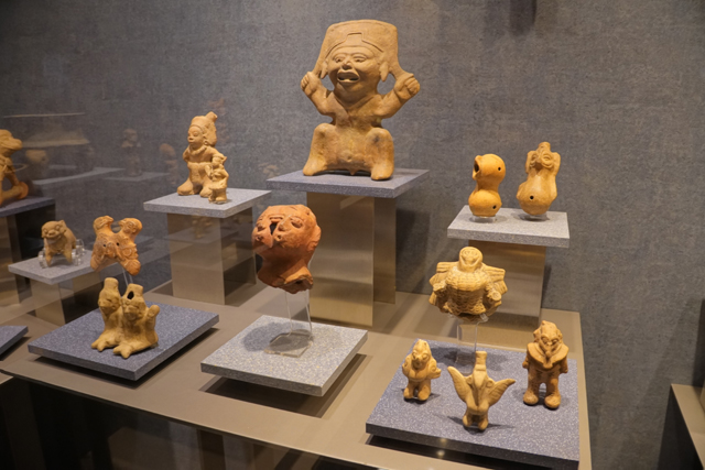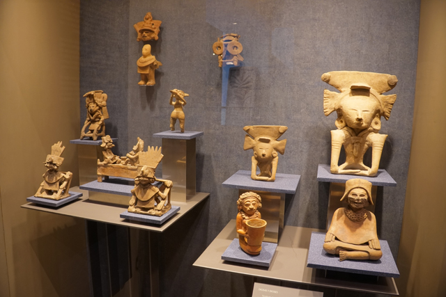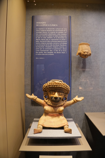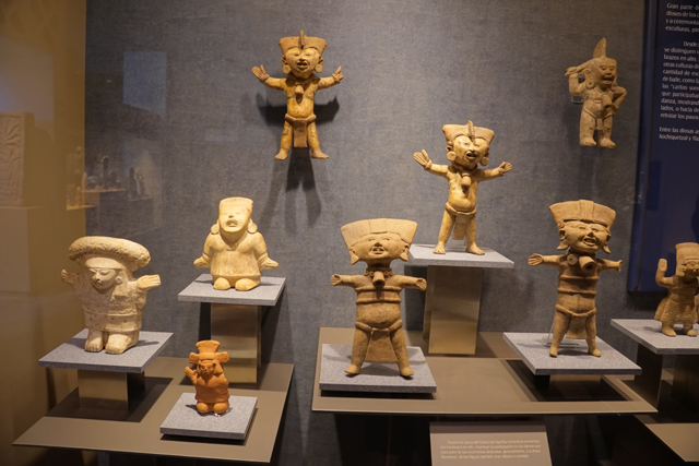 與諸女神相對的展櫃小女偶們相對逗趣,先望見的來自第三都城「Tres Zapotes」,有著「奧梅克」特色的寬臉豐唇外加五短胖身。然最讓人印象深刻的是批笑得很憨的露齒三角臉女子,它們來自「Remojadas」,數量相當多,顯然曾風行一時。學者將其解作儀式中的歡舞,或許還服用了迷幻藥劑。由於某些只有頭臉的其實是哨子,因此這嘴形可能也代表會隨舞蹈發出哨響。
