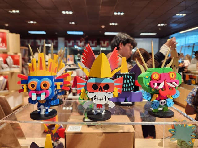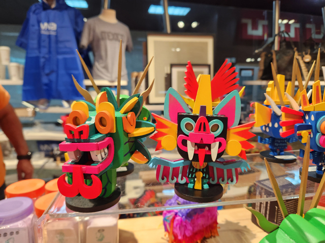認命後見領隊沒喊集合,我便把目光轉向玩偶區,於是就手滑了,一個是大眼睛雨神,同系列還有羽蛇神跟其他不知名,但都沒這隻可愛。另個是墨西哥特色的骷髏女,一路上很多店家都有賣,每次都令我心動,偏偏太小的不夠精緻,大的華麗的又太破費,這邊的倒滿剛好。可惜帶回家後,她的左手斷了。只能安慰自己,骷髏嘛,殘缺斷裂更有韻味。