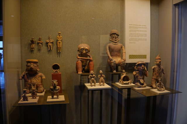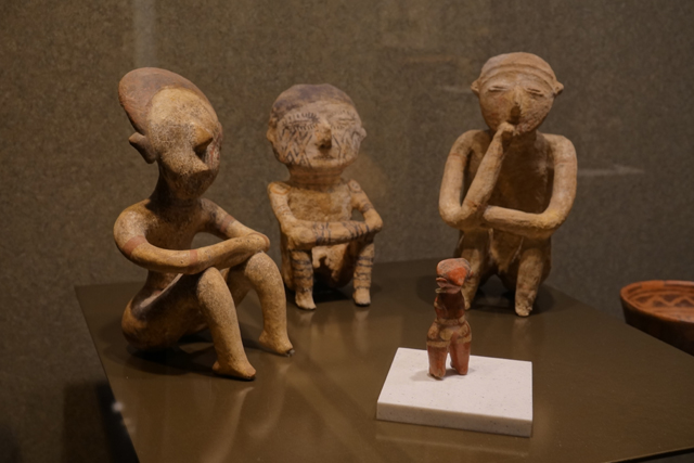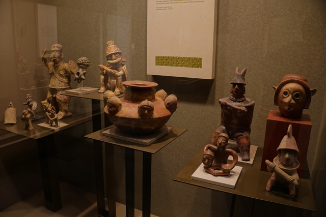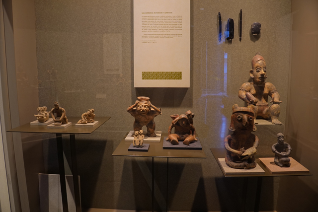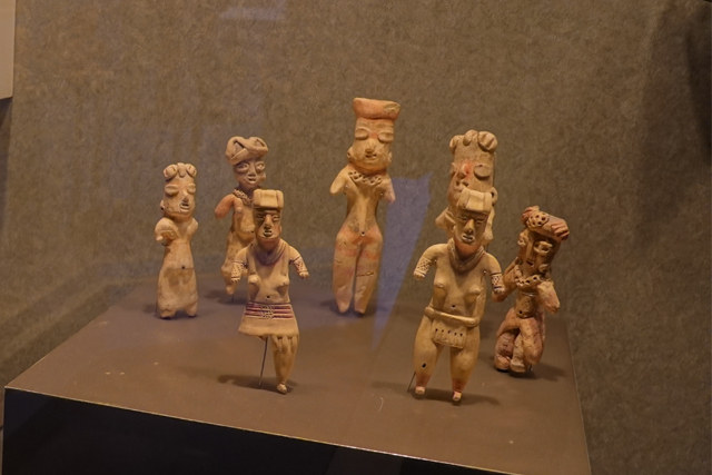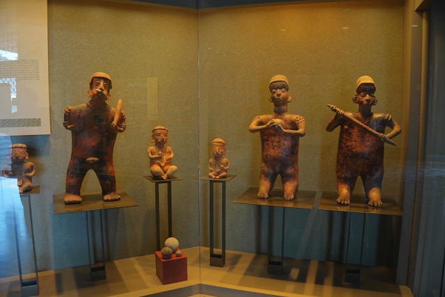 我快速瞥了說明板,看起來他們最特色的是「豎井墓」(Tumbas de tiro),也就是在深處挖出拱形墓室,以豎向坑道連通。擺出來的器皿、陶偶幾乎都是陪葬品。相對馬雅的威猛殺氣路線,這邊的人偶逗趣呆萌,不曉得實際是否也為這樣的和樂部族。