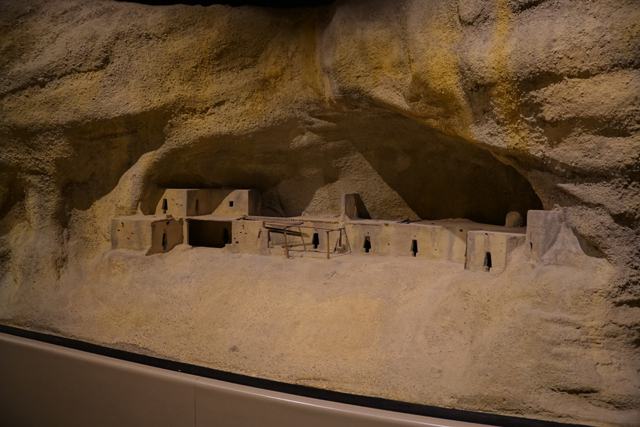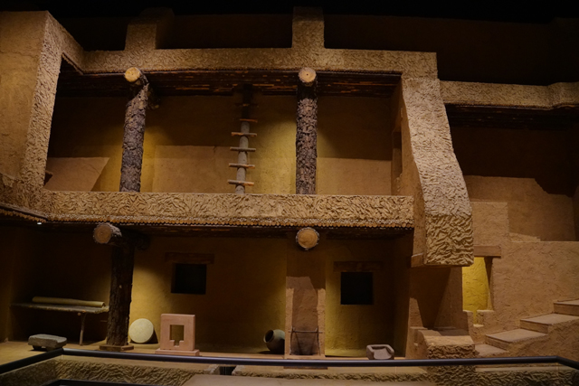 再往內的看來是另一重點,館方很用心地佈置出一整牆具多層結構的宅邸。也的確,這遺址「Paquimé」可是個世界文化遺產,發展於十二世紀後,它也有個較好記的稱呼「Casas Grandes」,指的就是眼前這樣的「大房子」。遺跡中此類帶木柱的土坯房據說有兩千個,結合球場、高台、市集,繁盛的情景很值得想像。