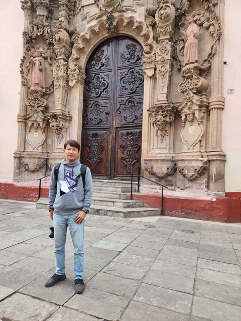 笑鬧過,不免又與「瓜納華托聖母聖殿」再相會,城市巡禮也一圈繞完,回到稍早從纜車出來的地方,這次導遊終於給了大家時間在附近拍拍照。由於是觀光客必經之處,這以「聯合花園」(Jardín Unión)為中心的商圈相當熱鬧,有些團員直接被攤位吸去,我的視線則很自然落於「聖雅各教堂」(Iglesia de San Diego)。