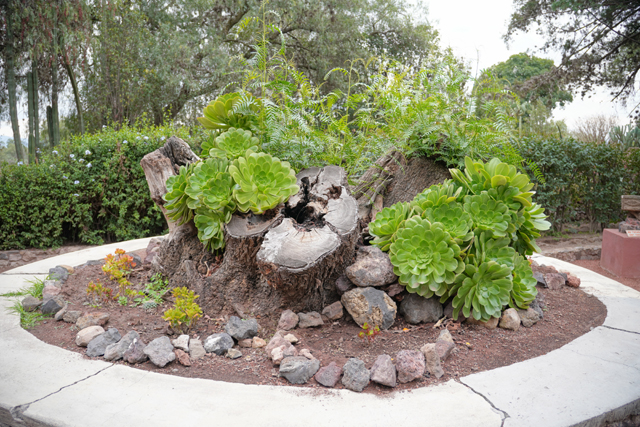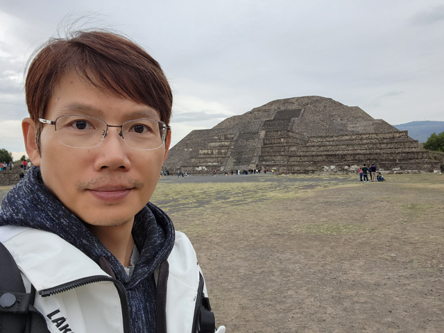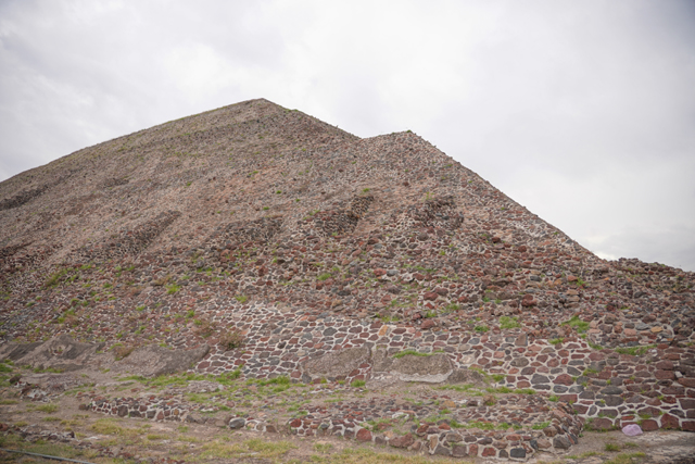 按照規劃,博物館之後該去解決被推遲的午餐,哪知實地一瞄,預想的那間卻開在園區外,擔心門票不能重複使用,就決定放棄了,把時間留著跟古城相處。繞著「太陽金字塔」背側朝北走,這兒本該有U形高台框住北東南三面,上頭蓋小殿供祭司居住,可惜現在全沒了。塔身也僅簡單做了結構穩固,沒像正面還原出層層階台跟石隙間的斑點填綴。