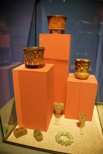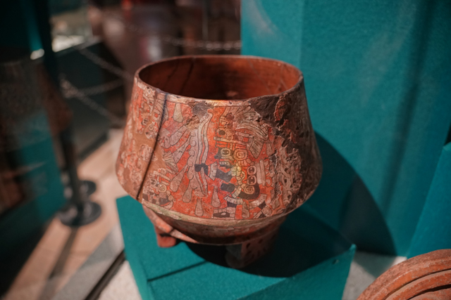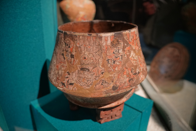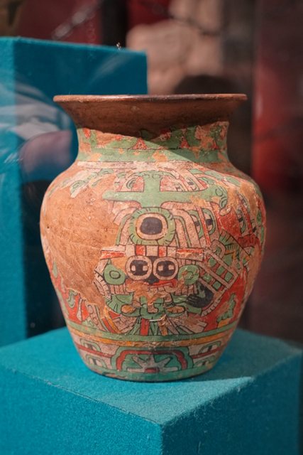 雨神自是不可或缺,根據說明板,除了手持閃電的人形,他也會以動物形象出現,像是咆嘯如雷的美洲豹、似溪蜿流的蛇、帶來水的鳥。此區的他則被繪於陶罐,色彩仍挺鮮明,萌萌大眼相當可愛。