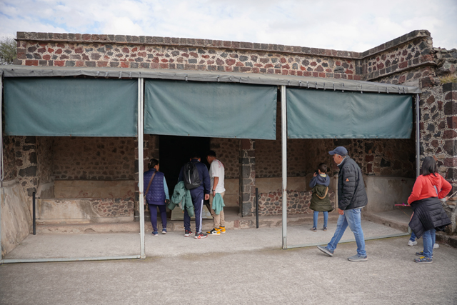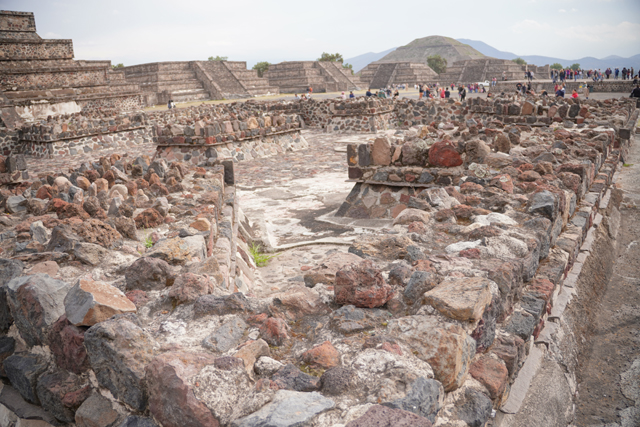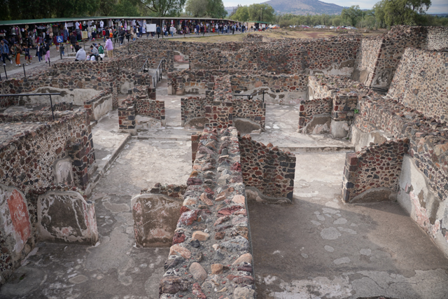 即便「羽蛇神廟」曾被規劃為「特奧蒂瓦坎」核心,往南的大道現今已失去其形了,連西邊的「大建築群」也沒剩什麼,被園區南入口的矮房侵佔。因此,接續的觀覽只能折返往北,被迫走一段重複路。