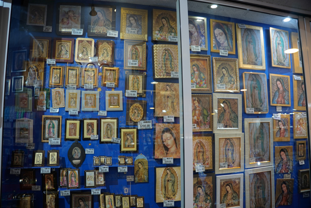 聖像屏背後的房間設了賣店,擺物數量相當驚人,聖像被以各種手法轉印化形,吊飾、立體小雕像、不同尺寸畫框的聖母掛了滿牆。本想以其商品數量跟空間,應有介紹書或其餘別緻紀念品,怎料逛了一圈,竟就單純只賣聖母像,宗教帶來的狂熱真是匪夷所思。