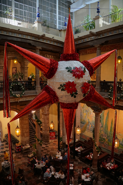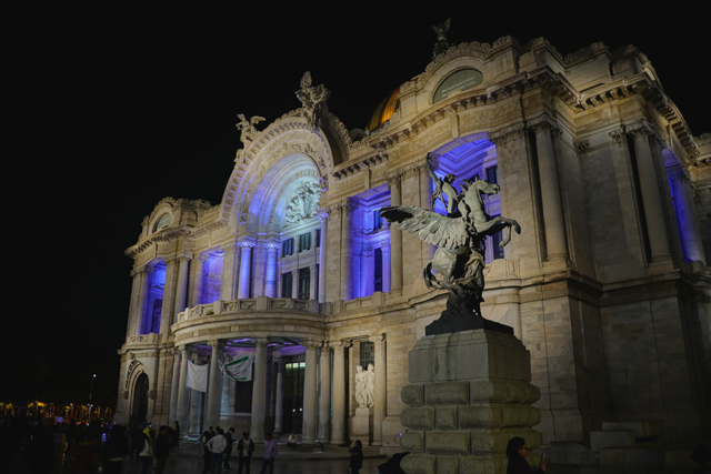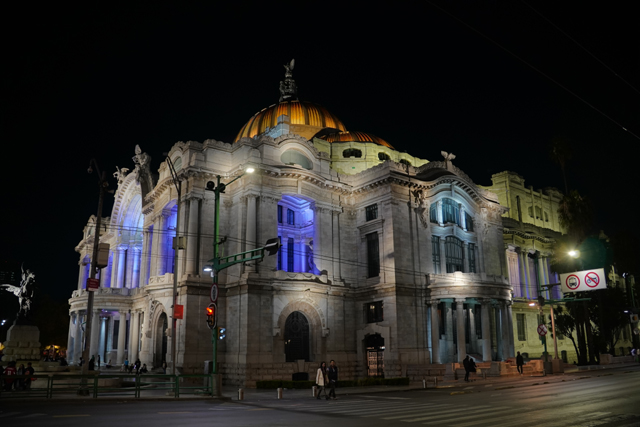 見識後,過馬路來到後天才會進去的「藝術宮」,地鐵站就在它後頭,其門面相比教堂那邊,算有打光了,拱頂橙黃與窗廊透出的青藍形成對比反差。望了望宮前的天馬展翼騰躍、駕乘少年的姿態昂揚,我在闃暗的公園中緩緩行走,既已將今天行程收了工,心思便不免推往明日。預定的目標是兩小時車程外的「普埃布拉」,要串的景點與交通難度又往上一階,但再怎麼對可能的變數憂慮,也無從著力,只能祈禱。