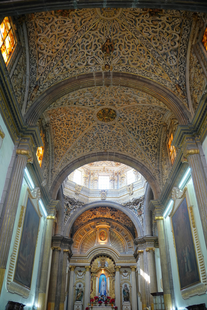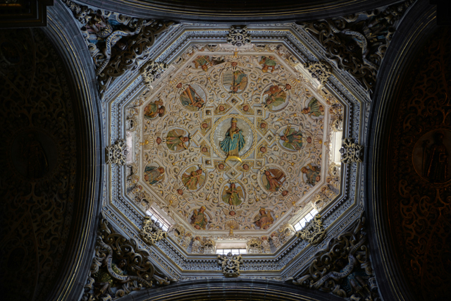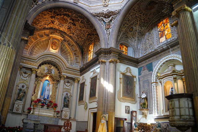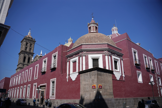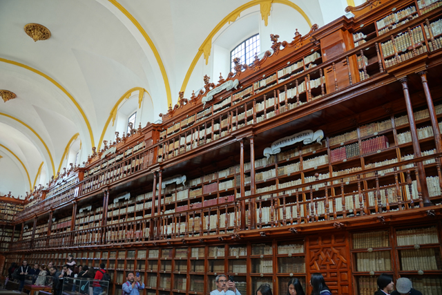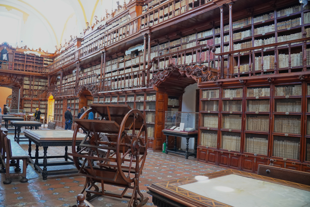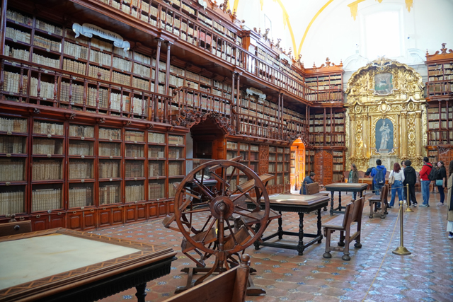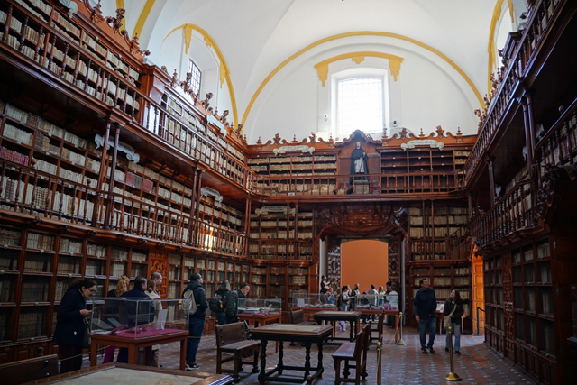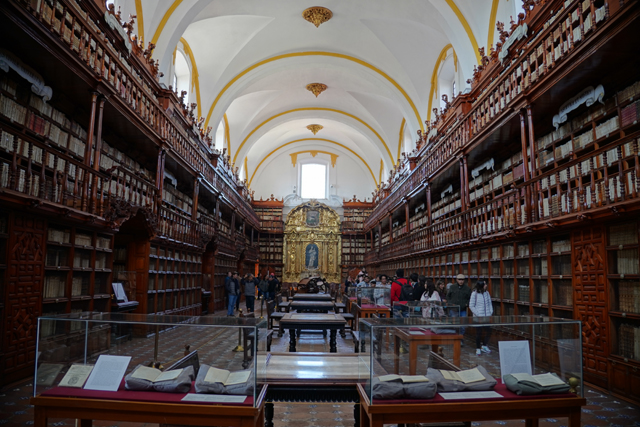 離開「普埃布拉主教座堂」,其比較無華的南翼門對面尚有間「Biblioteca Palafoxiana」值得去看看。這兒本是以使徒約翰為名的神學院,主教「Juan de Palafox y Mendoza」將自己的五千本藏書捐贈出來,並要求開放給民眾閱讀,就這樣成就了拉丁美洲第一座公共圖書館。