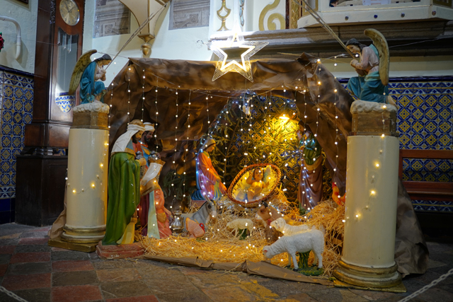 至於兩耳堂,它們跟主壇有著相似式樣,僅裝飾等級降了些,南邊給了「基督聖心」,北邊是無語問天的哀傷聖母,與壇下「馬槽降生」的慶節造景形成反差。拍攝之時,工作人員偶爾會從牆側房間探頭出來,現顯的表情挺費疑猜,有種監督著,隨時準備報警的樣子。