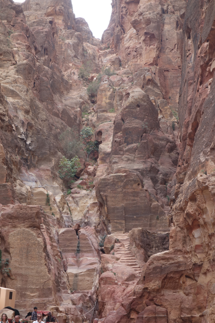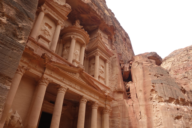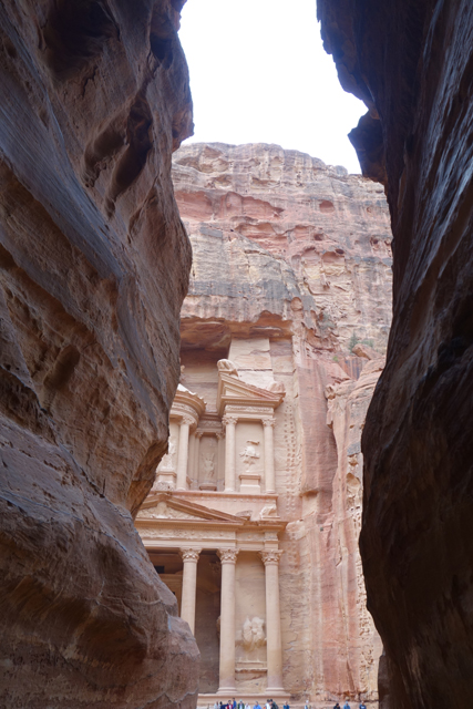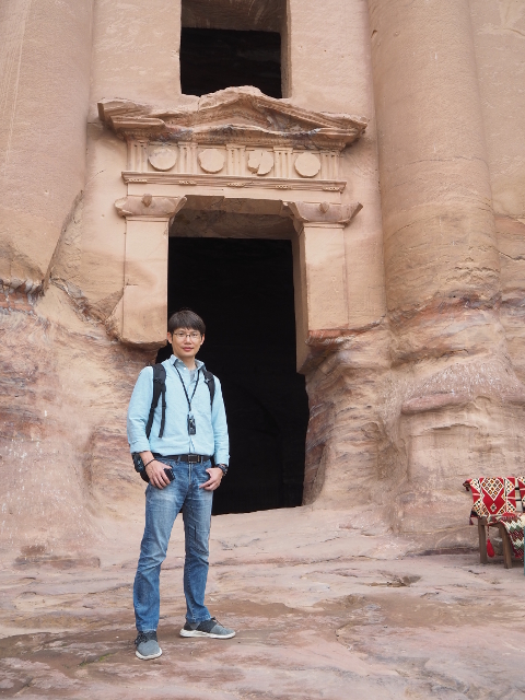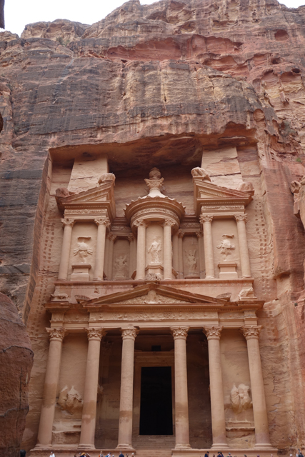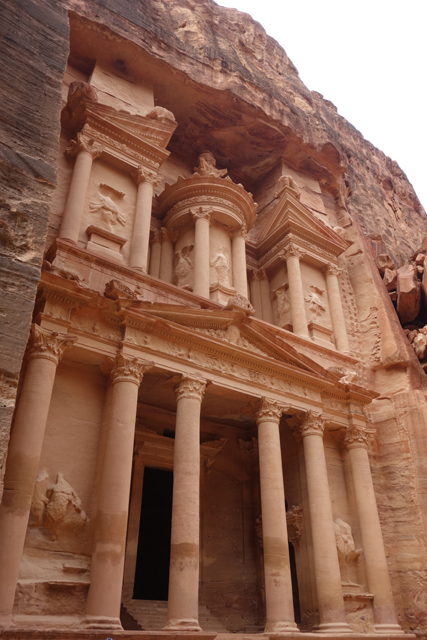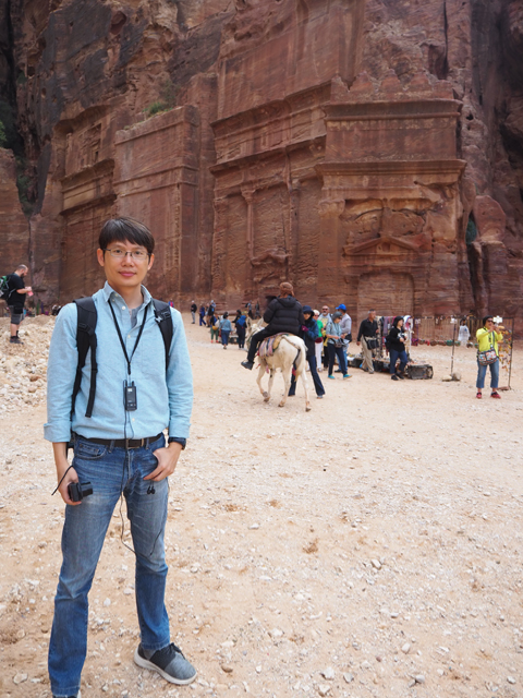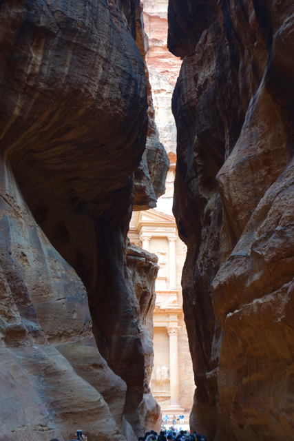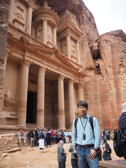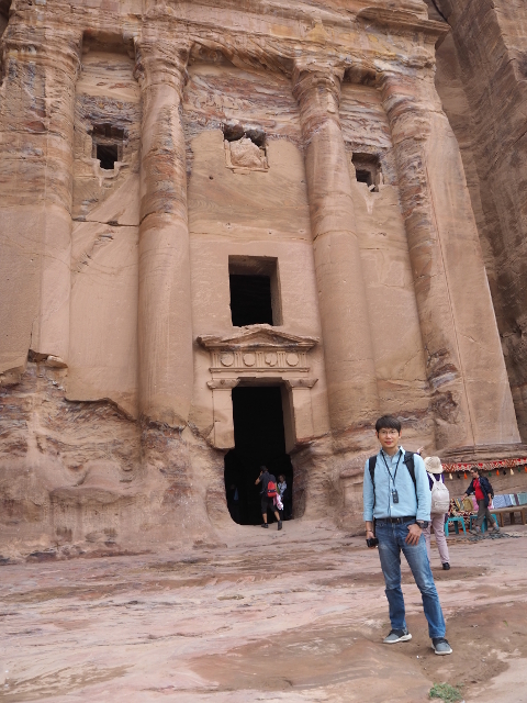 猶記得學生時期看過的電影「聖戰奇兵」,當時「印第安那瓊斯」為尋找因裝過耶穌血而能救死扶生的聖杯,循著線索追跡來此,就是在「佩特拉」的「蛇道」蜿蜒中望見這樣的隙景,荒壁上柱簷、龕室,層疊至天的堆砌。我也像於幽界徬徨後剎見天堂殿閣綻出的輝光,杵在岩徑愣愣佇望著,許久,才邁開步伐行出「蛇道」。