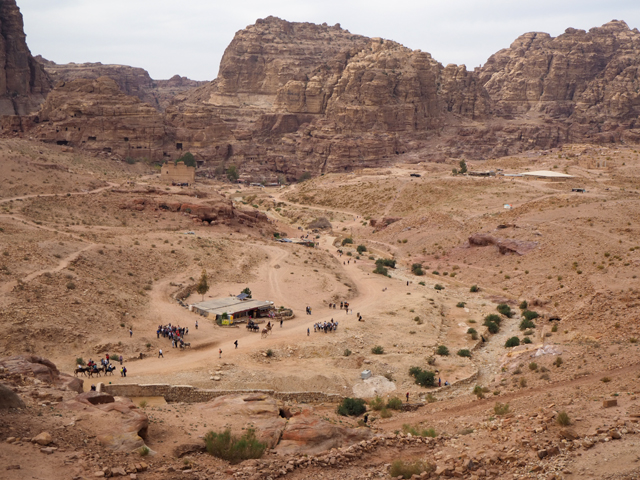 而再過去還有值得探究的祭場牆門遺跡,它曾被認為是十字軍的堡壘,然後就能見到「獻祭高地」了,方整凹台、面西階座,挺惹人想像。據學者推敲,中央小石板應是種祭品桌,階座則用來放置「Dushara」石柱,信徒們會圍繞著凹台,在祭神後舉辦宴會。或許有人覺得就是塊空地,如此煞費工夫很不值,但那兒可是俯瞰城市核心的最佳望台啊,為了這點,搞不好我就會把爬山的疲痠感扔遠遠,可惜這一趟來回也是兩小時起跳,軟腳蝦估計要雙倍,對我們這種一日旅團根本不可能,只能回家翻別人相片了。