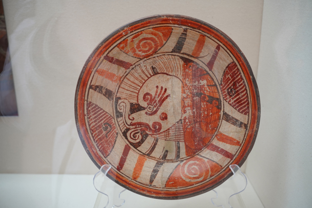 雖說在公元八百年衰敗,「喬魯拉」並未就此退場,因為新的族群又看中了這塊地。先是「Olmeca Xicalanca」這一族,他們政教中心「Cacaxtla」、「Xochitecatl」距此不遠,順理成章將此區吞併。但當「Tolteca-Chichimeca」從「圖拉」南下時,政局又更迭了,這群人習性信仰與阿茲特克相近,不僅喜歡活人獻祭,還棄用了「大金字塔」,另蓋一座「羽蛇神金字塔」。館方將這時期以「Cholulteca」名之,並再細切四階段。儘管我依舊看不出器皿在這時期裡的差分,跟早年那段倒是顯明的。棕紅之外多了墨黑雪白的襯色,動物也填繪了藝術性紋帶,加綴挑捲,小圖騰印章跟模具亦是另種手藝展現。