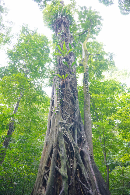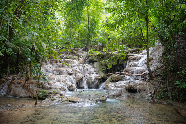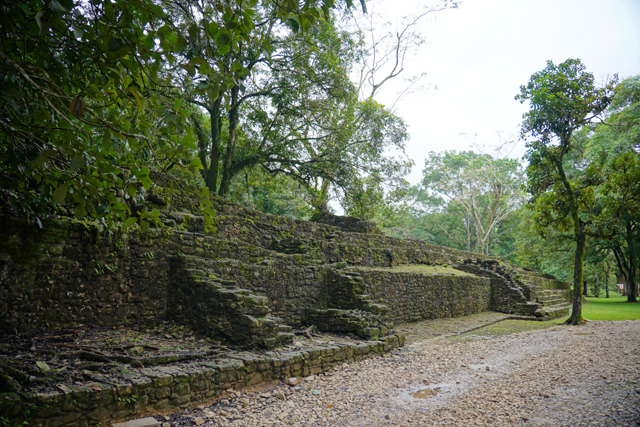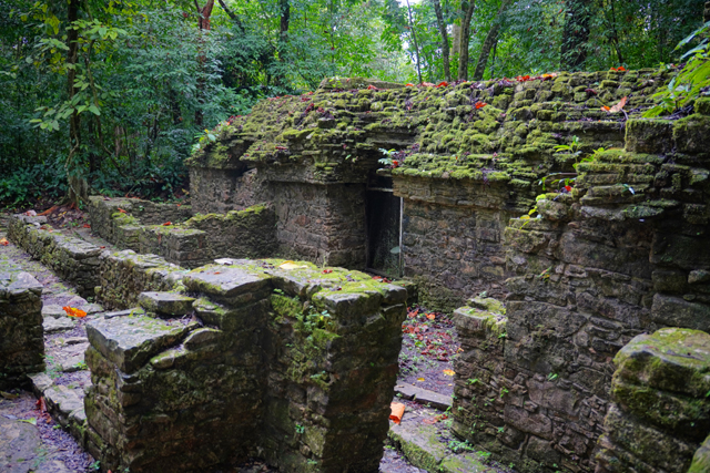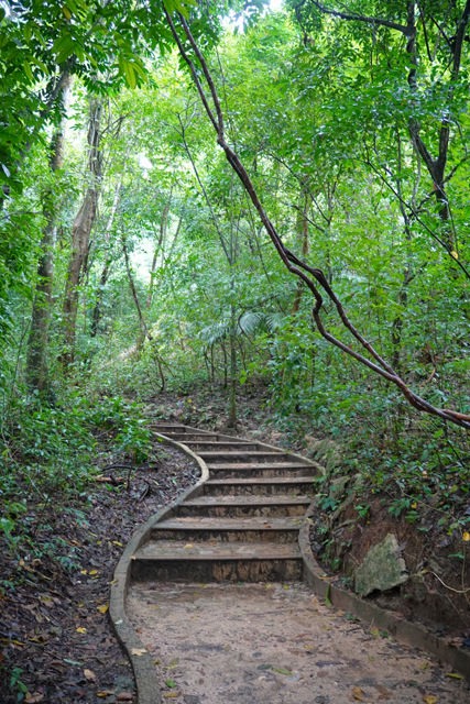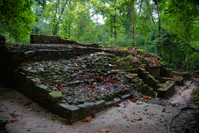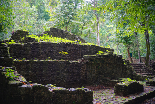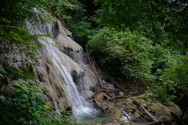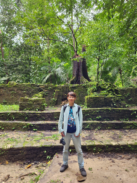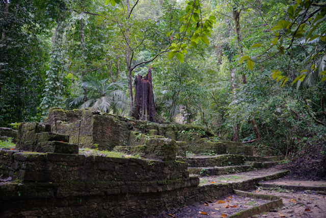 步階在這之後轉陡,意味要抵達主遺址仍有大段上攀路。途中另條瀑布忽現,根據地圖,是劃穿城心的「Otolum River」至此飛墜。若再跨越鄰近溪流,尚有佔地廣闊的「Group C」,但不知為何,岔路擋住不給進。旅程之前,老師有先跟考古團來「帕蓮克」探險,該不會就是那方向吧?據他的影片,不僅涉水、走爛泥、中途還摸到有刺的樹幹流血,拔刺花了好大功夫。我這城市軟腳蝦若去,不曉得會倒在第幾關。