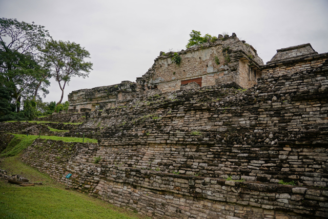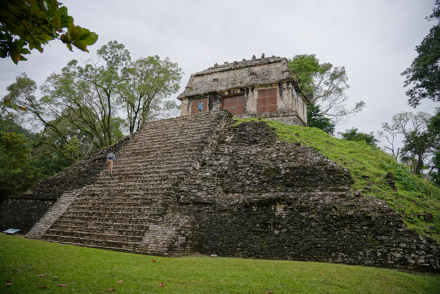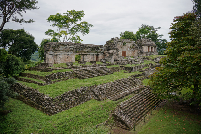 吃完午餐回旅館領行李,準備赴擔任壓軸的「帕蓮克」,相較「提卡爾」、「奇琴依查」,它只能算中型城市,雖約莫西元前三世紀便有雛形,直至五世紀才由「K’uk B’alam I」建立了王朝。根據資料,他們將都城取名為「眾水之地」(Lakam Ha),王國叫「骨頭國」(Bak)。即便名字直白粗野,藝術成就卻相當高,建築亦具特色。或許就是因為這樣,遺跡群被後世以「堅固房屋」稱之,經西班牙語轉譯,成了如今的「Palenque」。