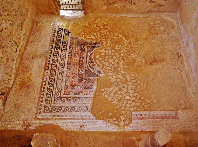 不甘心的我偷偷落隊跑去不遠處的「希律王」西宮前,快速瞄過小模型,對著房閣輪廓盯望幾秒。似乎是雙層結構的它佔地也算廣,北宮若扣除倉儲及澡堂,或許還比它小,根據資料裏頭含有王座廳跟浴室,地上殘餘的馬賽克地磚亦比北宮那兒的華麗,有浪紋圈繞的花綻,不懂為何就不肯多花幾分鐘帶大家走一趟。在追上隊伍的途中,我四面環望,地圖將近處幾間標註為「希律王」的小殿,有一棟則是拜占庭時期的教堂,隱隱可見其尾牆的拱窗。印象中沒見過有人提及這兒有聖經的相關典故,可能只是取其遺世僻靜吧。
