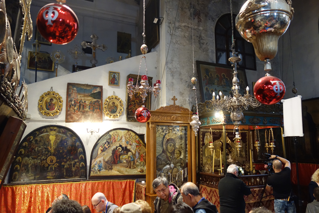 這樣的地方,應該有很多人直覺平安夜裡會有著隆重典禮,其實不然,由於東正教認定的出生日與天主教不同,這兒又由他們做主,因此當夜轉播的儀典其實在隔壁的「聖凱撒琳教堂」。那兒的地窟也敬著一位重要人物「耶柔米」,他奉獻半生完成第一版聖經拉丁文譯本,是後來英文譯本的重要參考,但來去匆匆的旅遊團自然是略去了。