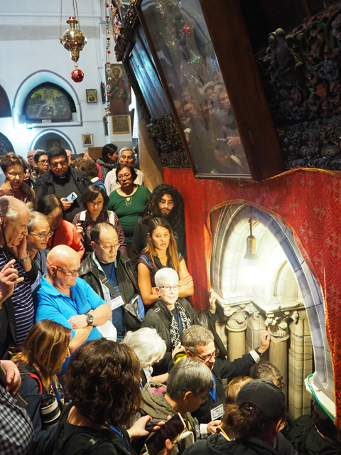 解決了「錫安山」的周邊景點,照邏輯應該是要穿進不遠處的「耶路薩冷」,哪知上了遊覽車,領隊卻說現在要去看耶穌在「伯利恆」(Bethlehem)的出生地。納悶的我再次比對行程表,發覺聖城的景點又被乾坤大挪移了,「伯利恆」表定本是在昨天傍晚,被與兩個博物館交換,這樣的換法我可以接受,畢竟博物館相對不是重點,被逼著走馬看花遺憾也不會太深。且照領隊說法,去「伯利恆主誕堂」(Church of Nativity)朝聖的人無敵多,最好門一開便報到,才能減少排隊時間。只是,把「伯利恆」塞到早上時段,剩餘那堆「耶路薩冷」景點會被怎樣切分呢?我不免開始擔憂。
