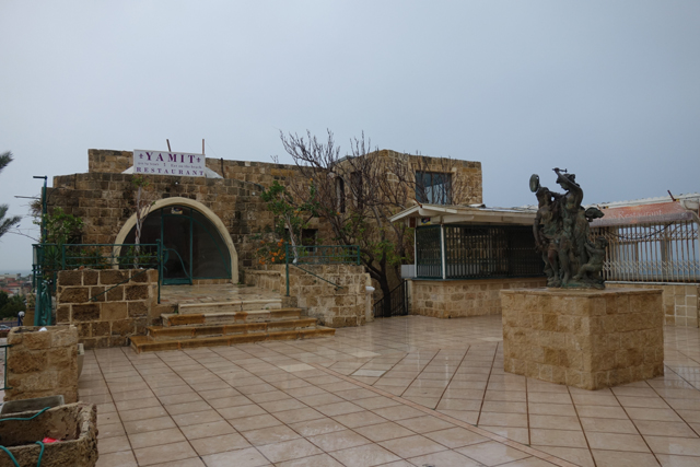 若是基督徒,或許能在城裡找到更多類似彩蛋吧,略知匹毛的我僅能以觀光客之眼,在行走中四望。感覺主政者還挺用心,在保持古城氛圍的同時,也找了不少藝術家適度妝點,進城時便有見到社區仿著石岩堆砌、以弧拱的切分,營造新式甬道,走在古城核心裡,幾座殘著風霜的褐黃老屋,也藉著些許雕塑,有了新的生命。先遇見的「Ilana Goor Museum」有不少網誌提及,時間充裕的人可以進去看看主人的雕塑創作,欣賞蒐羅自非洲、拉丁美洲的部落風藝品,而像我們這類被綑綁住的團客,就只能望著屋頂的斑彩駿馬,以及穿雜瓶甕銅雕的天台花園。