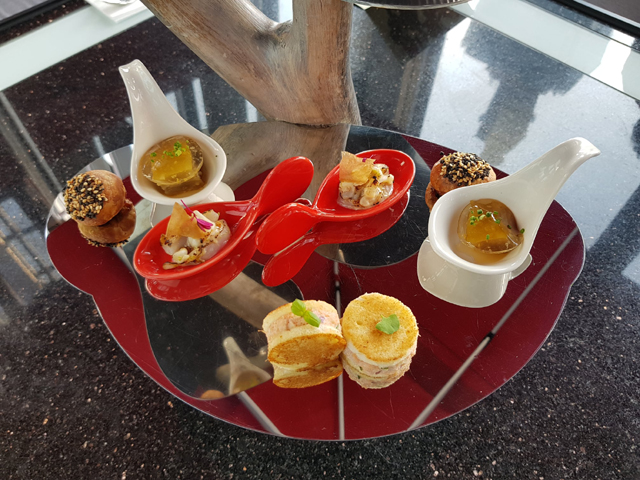 炙燒干貝小卷、蟹肉脆皮饅頭三明治。