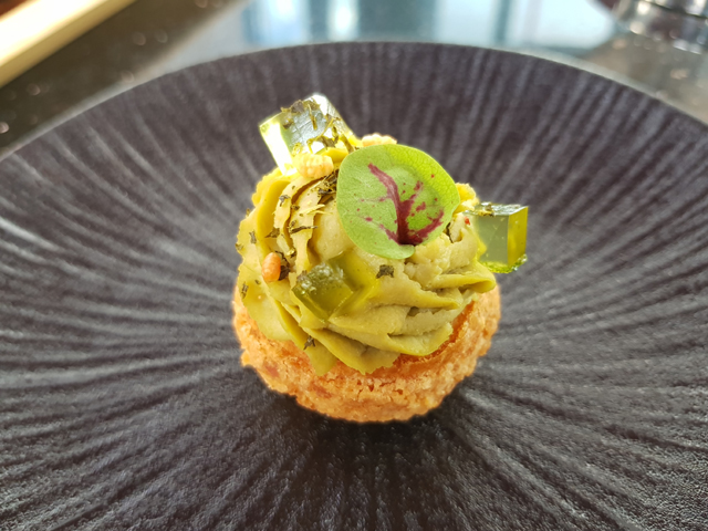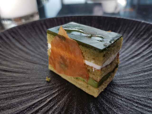第三層是鹹點,有搭配檸檬草三星蔥的胡椒餅、醋漬日本茄昆布柴魚凍、