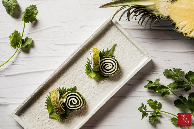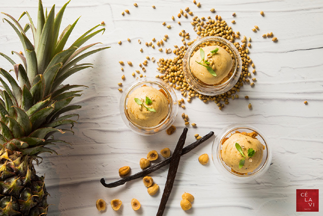 「香料烤鳳梨佐榛果芫荽子醬」,芫荽子也是香菜味嗎?到底主廚多愛香菜啊。