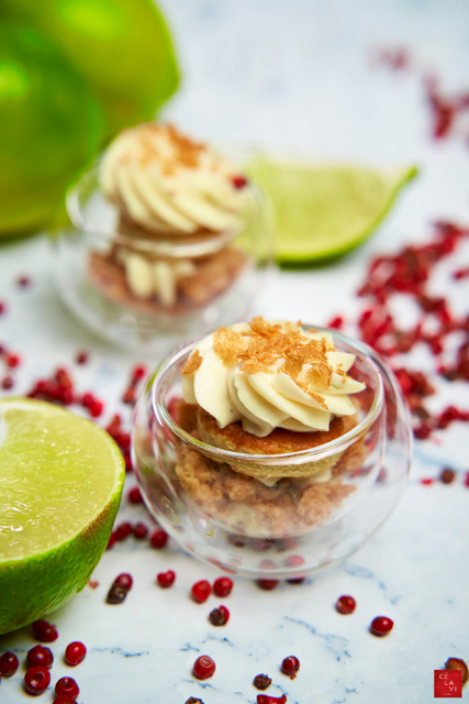 這個是「檸檬白巧克力粉紅胡椒酥脆杯」。