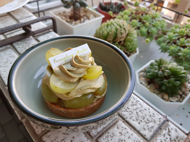 至於這款是沒在別家看過的「青葡萄茉莉綠茶塔」,層次疊得滿用心,