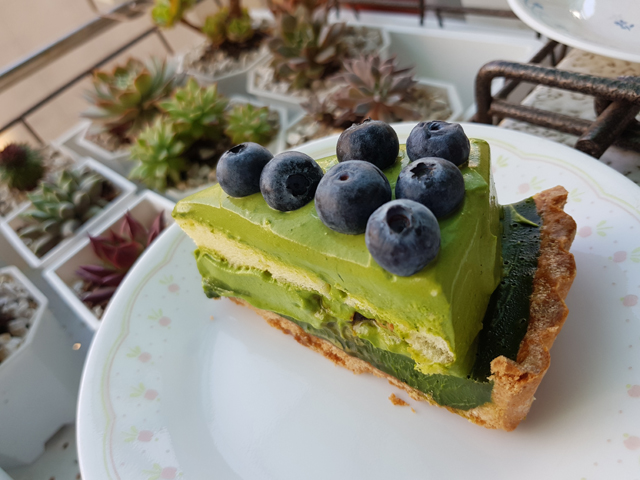 貪心地拎了三個回家,這個「藍莓焦糖榛果抹茶塔」就是她說近期大受好評的。