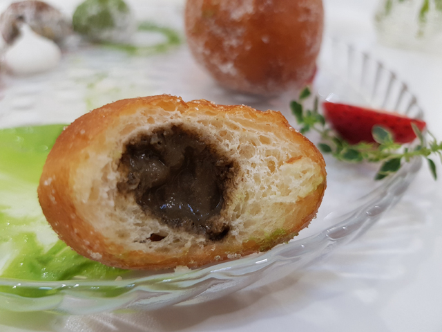 畢竟載體是甜甜圈,表皮的比例還滿厚,餡太少會像在啃麵包。 XD