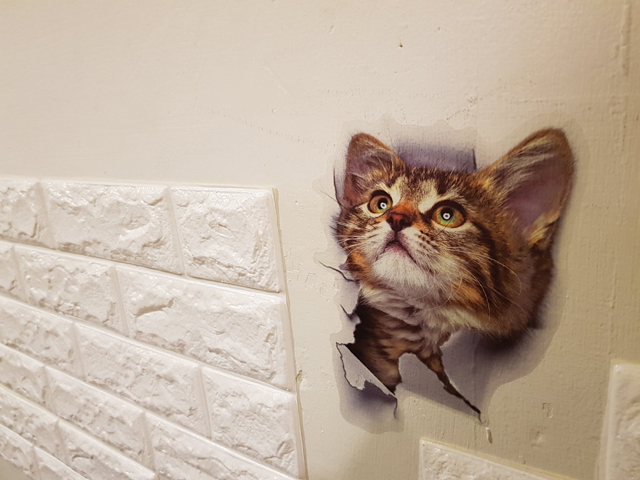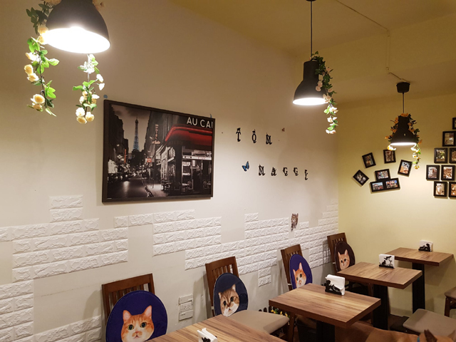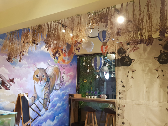 回過頭可以看到門口那面貓主題的彩牆,看來店主人應該是位貓奴。