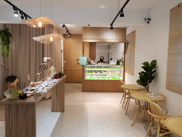 只有半區是座位,另一半在賣衣服跟小首飾,真妙。