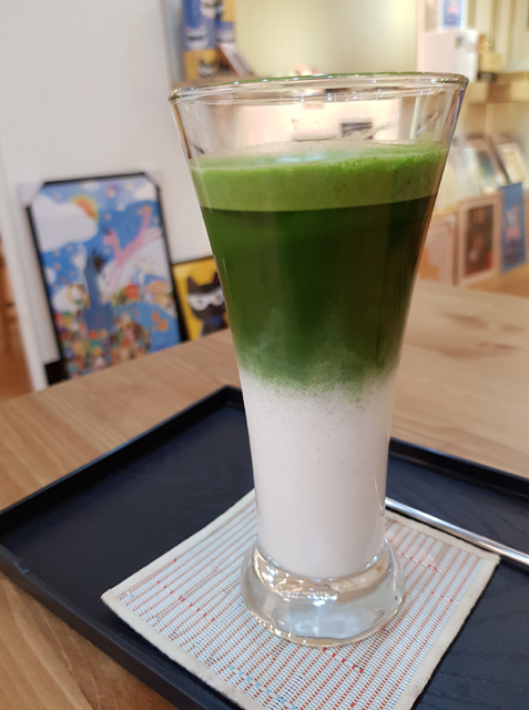 自然也點了一杯「抹茶拿鐵」,杯子的設計居然是雙層的,感覺是為了保持溫度,