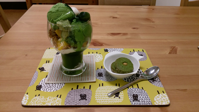 飲料過往都是點抹茶飄浮,這回原想改焙茶飄浮,哪知店員卻說沒做焙茶冰淇淋,可能是天意吧,