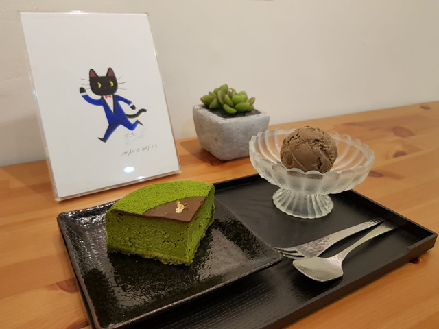 由於這款已經有抹茶冰淇淋,所以配蛋糕的特別選了焙茶,